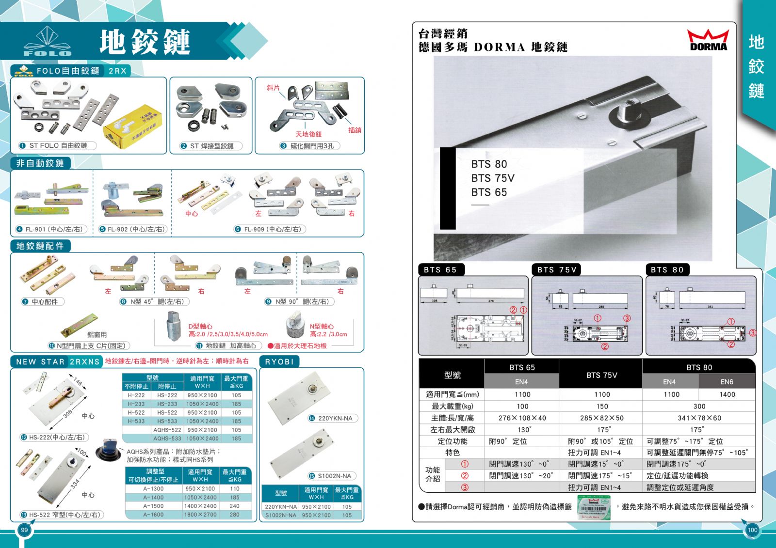 | 35~38 | 門窗配件 | 99~100 | 地鉸鍊 |